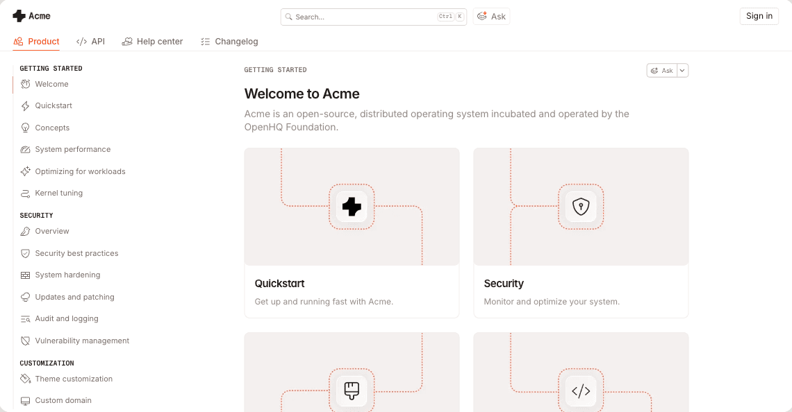 Unify every knowledge source — from product updates and community feedback to on-team expertise — into one intelligent layer that lives in your docs, in your product, and far beyond.