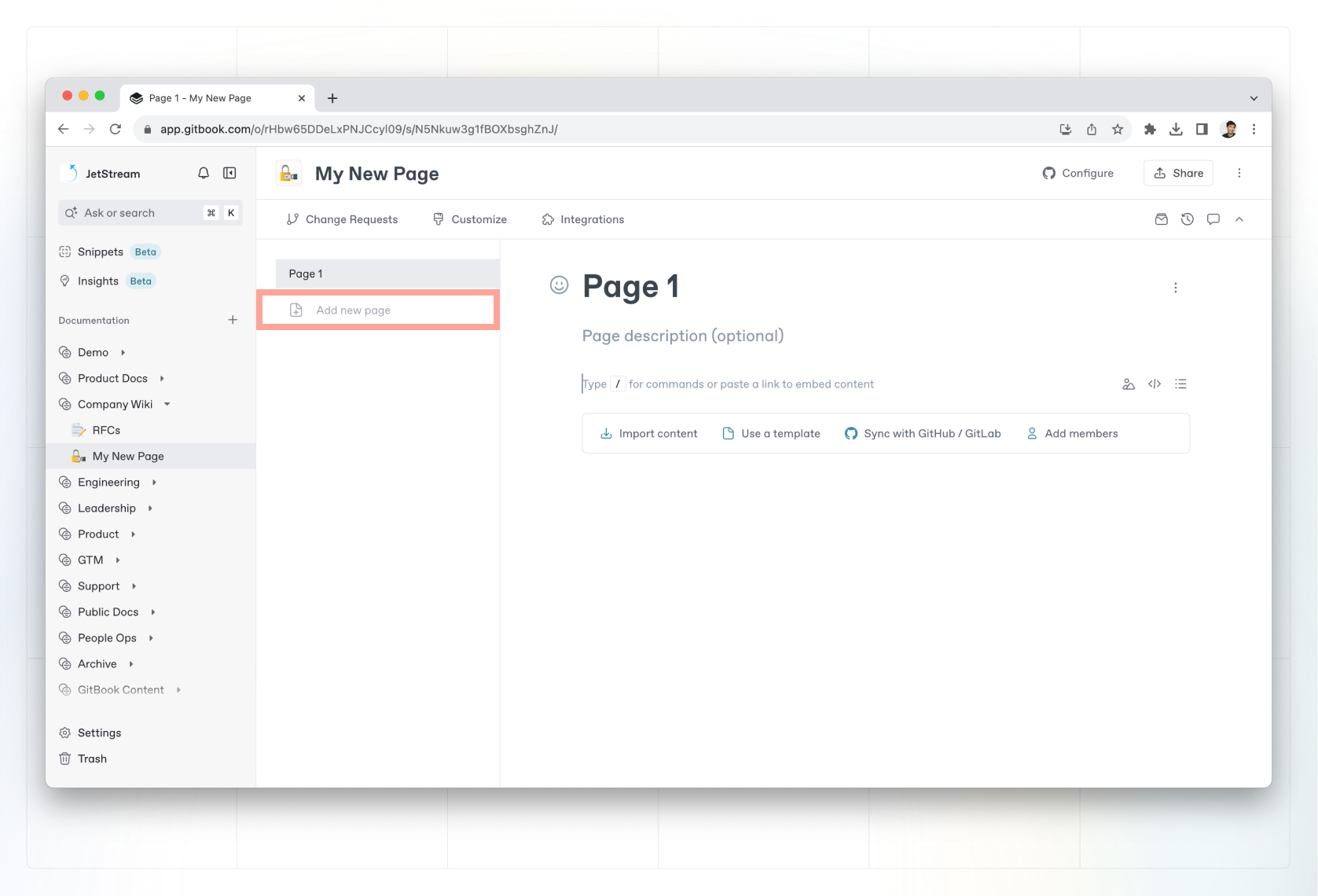 ### Create a new page